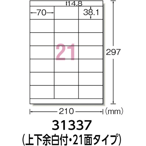 3M エーワン[[TM上]] ラベルシール(プリンタ兼用)再生紙 21面 上下余白付 20枚入 31337