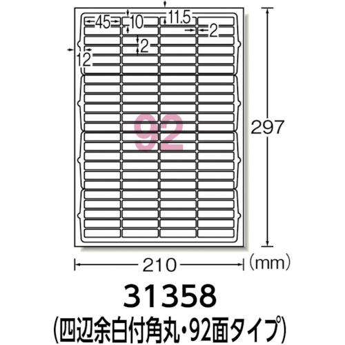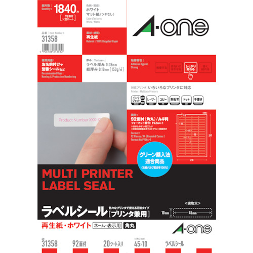 3M エーワン[[TM上]] ラベルシール(プリンタ兼用)再生紙 92面 四辺余白付角丸20枚 31358