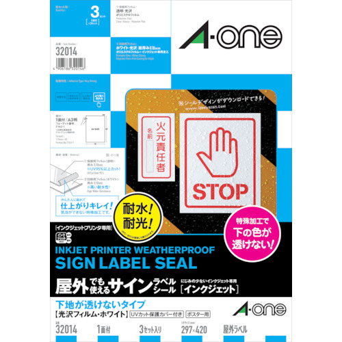 3M エーワン 屋外用サインラベル(インクジェット)下地が透けないタイプ A3 32014