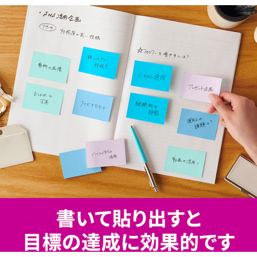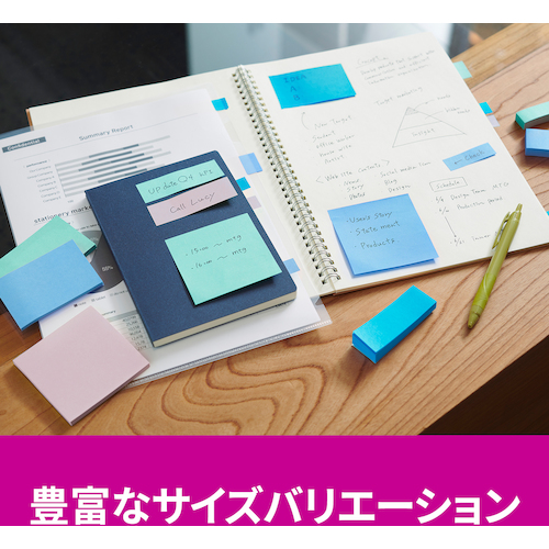 ●紙製のふせんなので、筆記具を選ばずに使用できます。