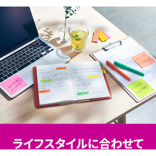 ●紙製のふせんなので、筆記具を選ばずに使用できます。