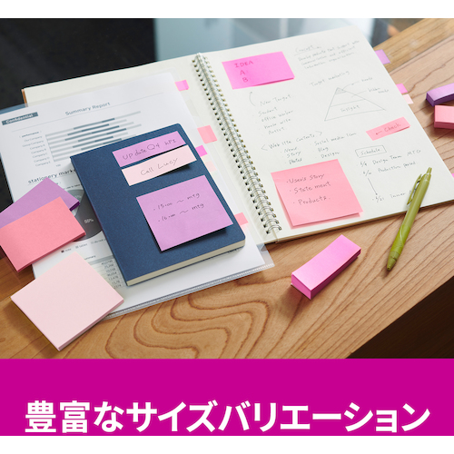 ●紙製のふせんなので、筆記具を選ばずに使用できます。