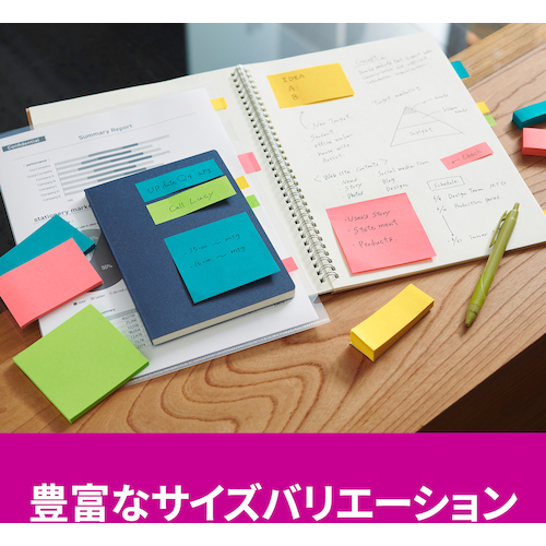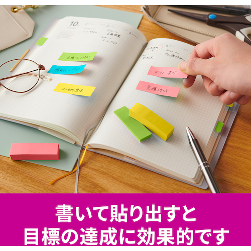 ●紙製のふせんなので、筆記具を選ばずに使用できます。