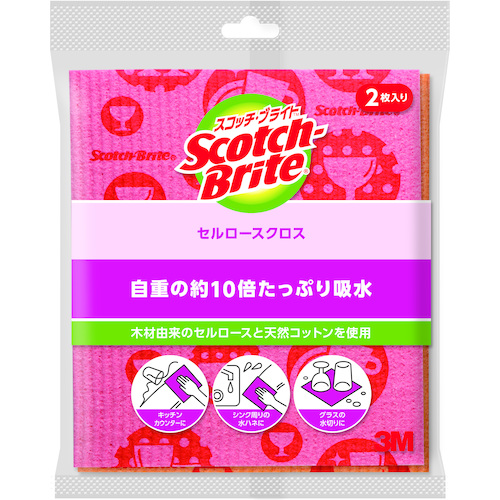 3M スコッチ・ブライト セルロースクロス デザインシリーズ ピンク・オレンジ各1枚入 CCL-D2