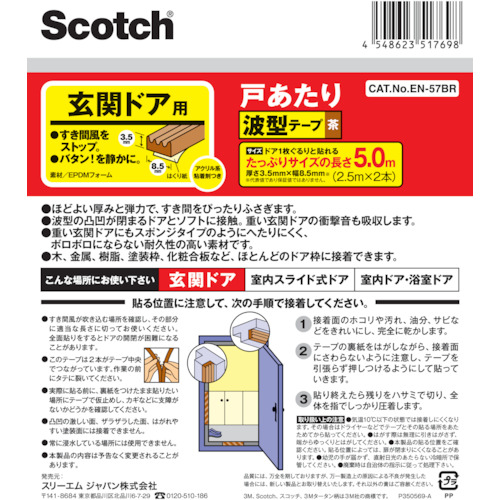 3M 戸あたりテープ 玄関ドア用 波型 3.5mm×8.5mm×5m 茶 EN-57BR