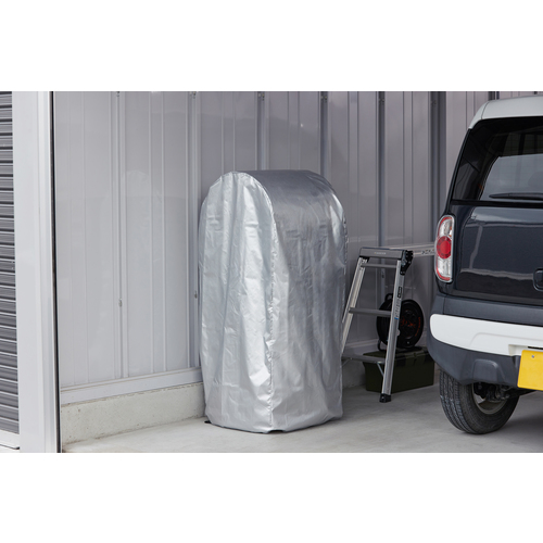 ●積み重ねたタイヤの上からタイヤカバーをかぶせて、すその紐を縛るだけでタイヤを収納できます。