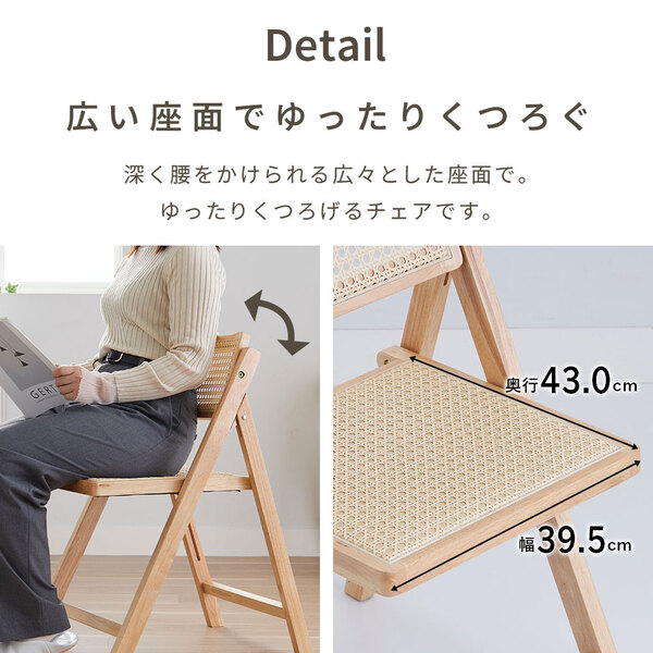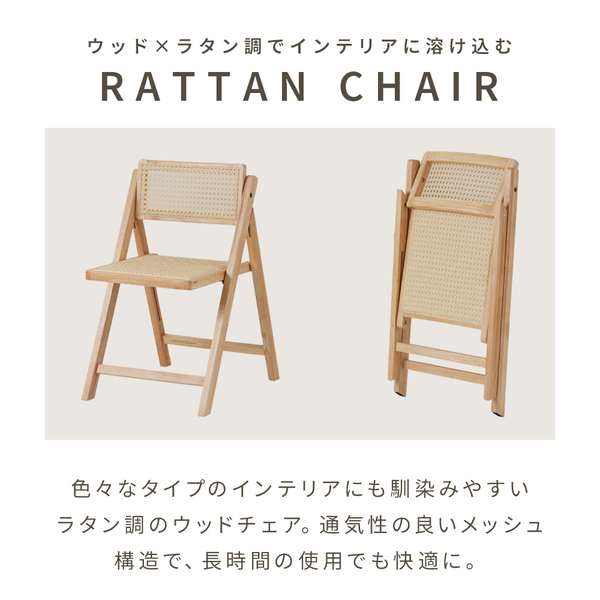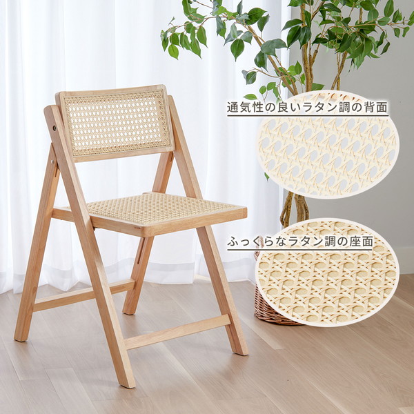 9. ラタン調折り畳みチェア ナチュラル 1脚