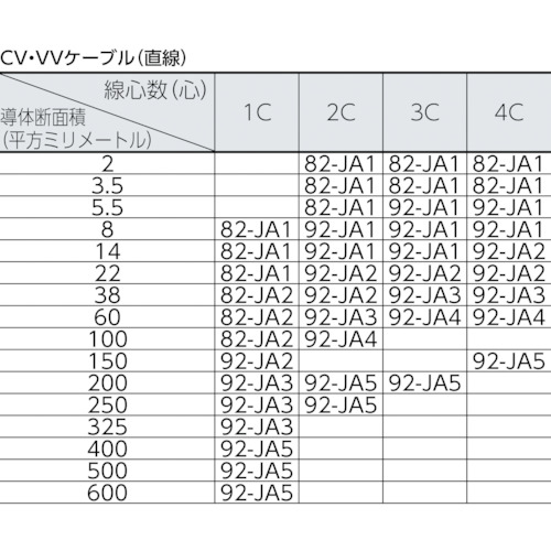 ●タイプ:直線接続・単心,CVT,多芯ケーブル