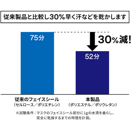 ●速乾性のあるフェイスシールが快適な着け心地をサポートします。