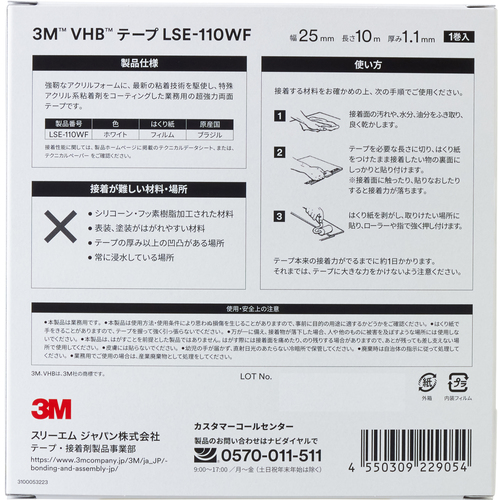 9. 3M VHBテープ LSE110WF 25mmX10m 多用途・難接着プラスチック用 LSE110WF 25X10 BOX