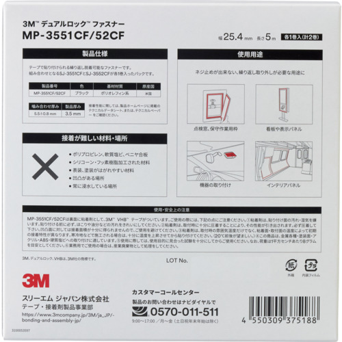 3M デュアルロックファスナー ミニパック MP-3551CF/52CF 25mmX5mセット MP3551CF/52CF