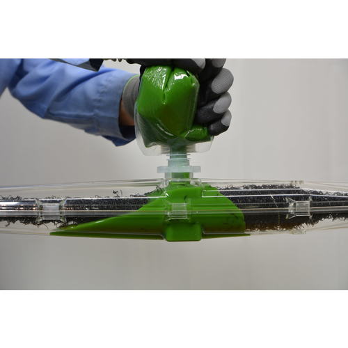●スパウト付セパレートパックを注入口に直結する工法を開発しました。