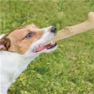 ・本製品は丈夫な素材を使用していますが、ワンちゃんの性格や遊び方等によっては製品そのものが大きく割れたり、トゲ状の木片が生じる恐れがありますので、必ず使用前後に商品の状態を確認したうえで飼い主様の目の届く場所で使用してください。