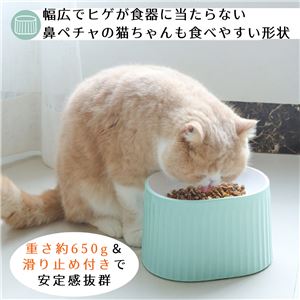 高さがあるので、ペットの首への負担を軽減。かがんで食べづらそうな子へ。広口で浅いペットボウルで、猫ちゃんのおひげにあたりづらいので快適にごはんを食べられます。