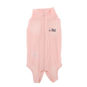 背中全面がファスナーになっており、手足からウェアを通すタイプになっています。頭から被るタイプが苦手なワンちゃんにもお勧めです。 背中には2カ所マジックテープで仮留めが出来るので、ファスナーも上げやすく着脱が容易です。動物の骨格を考えて設計しているため、着用していても動きやすく、ワンちゃんにストレスを感じさせません。