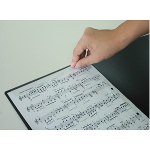各面の上下に高透明の用紙止めが付いているので、楽譜がきっちりと納まります。