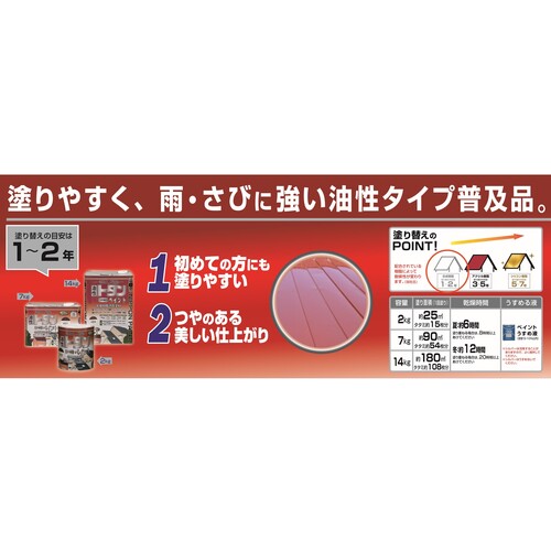●トタンに対する密着性に優れ、美しい色とツヤが長持ちします。