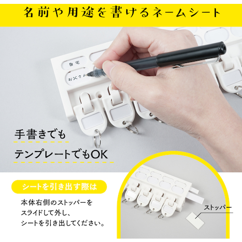●名前が書けるネームシート付きなので、鍵の取り間違えを防止します。