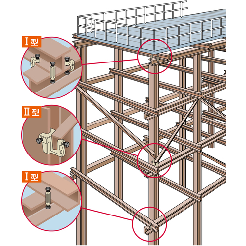 ●乗り入れ構台、オーバーブリッジ、作業台、足場、支持保工架台、置構台、仮設橋などに。