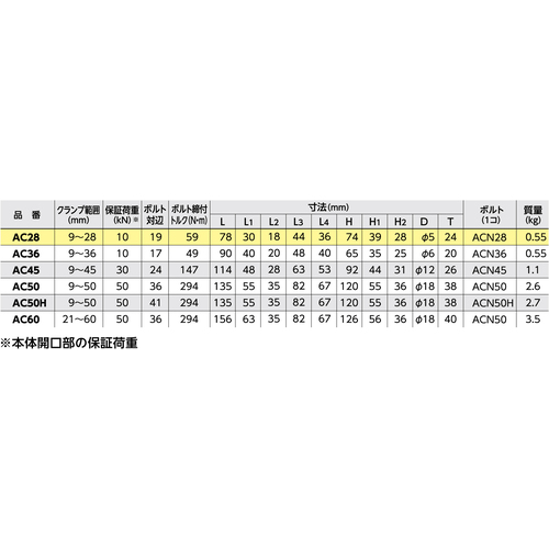 スーパー アイアンマン(仮設用挟締金具)クランプ範囲21~60mm ボルト対辺36タイプ AC60