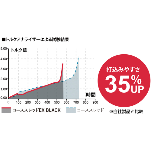 ●大きなねじピッチの効果により、打ち込みスピードが速くバッテリーの消耗を軽減します。