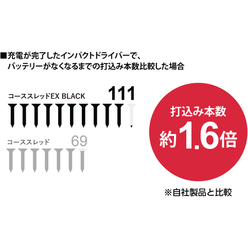 ●大きなねじピッチの効果により、打ち込みスピードが速くバッテリーの消耗を軽減します。