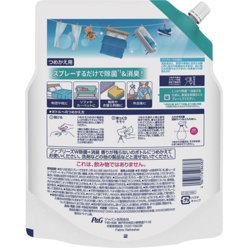 9. P&G 消臭スプレー ファブリーズ W除菌+消臭スプレー 布用 香りが残らない 詰め替え 1280ml 433727