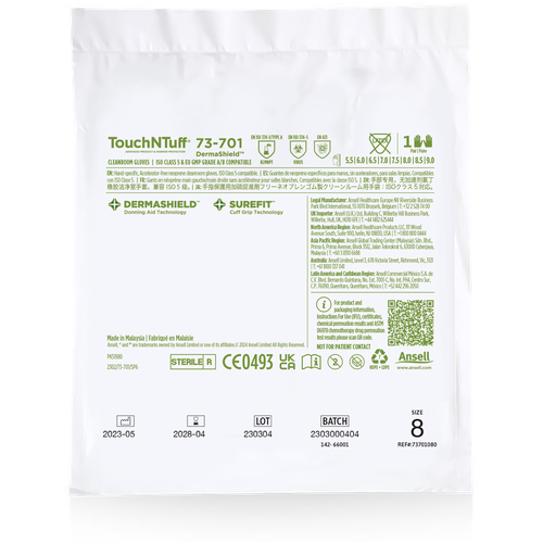 9. Ansell CR用滅菌ノンアレルギー手袋 ダーマシールド 73-701A(25双入) 6.5インチ 73-701A-6.5