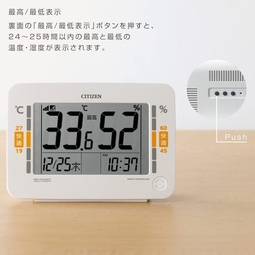 シチズン 高精度 温湿度計 電波時計機能付き 白 132*186*53 8RZ232-003