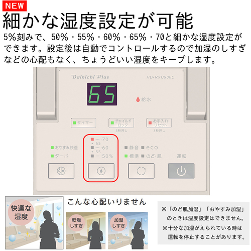 ●50~70%の5%単位でお好みの湿度を設定できます。