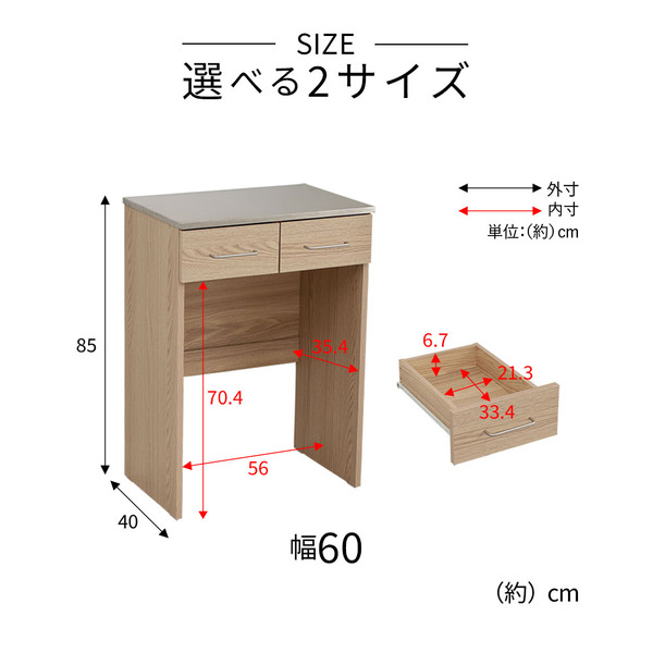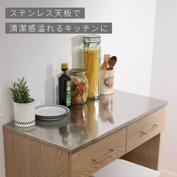 ■ 品質/天板:ステンレス、側板・前板:メラミン、引出し:コロレール、引出し取手:ステンレス