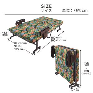 セミシングル・シングル・セミダブル:高さ60.5(床面高43.5)、マットサイズ:長さ200×厚み11