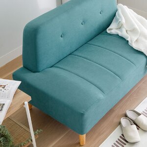 9. 座面ゆったりベンチソファ ターコイズブルー 組立品
