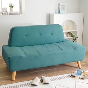 座面ゆったりベンチソファ ターコイズブルー 組立品