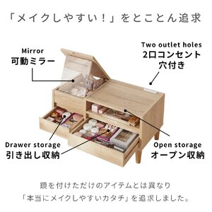 ごはんを食べたり作業をするときはおしゃれなテーブルに、メイクをするときはドレッサーに変身!