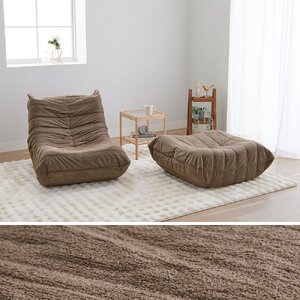 9. ゆったり包み込まれるローソファ ブラウン 1人掛+オットマンセット