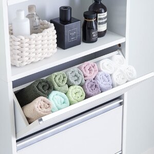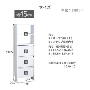 収納目安(幅45/フラップ1段): フェイスタオル約10枚、衣類約7枚