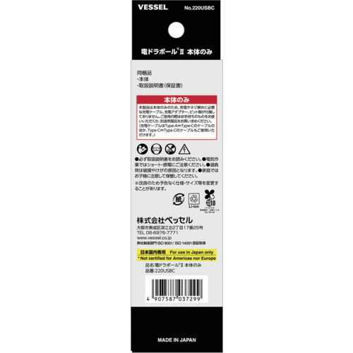 VESSEL ドライバー 220USBC 電ドラボール[[R2]] 本体のみ 220USBC
