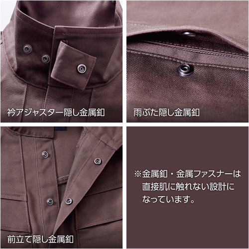 ●金属釦・金属ファスナーは、直接肌に触れない設計です。