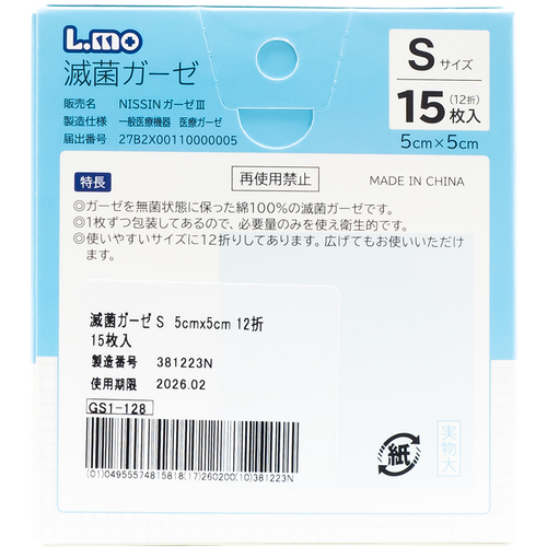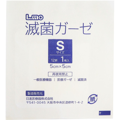 ニッシン 医療ガーゼ エルモ滅菌ガーゼ15枚入 ホワイト Sサイズ5cmX5cm 781581