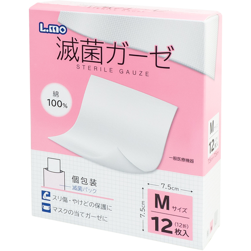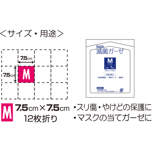 ニッシン 医療ガーゼ エルモ滅菌ガーゼ12枚入 ホワイト Mサイズ7.5cmX7.5cm 781582