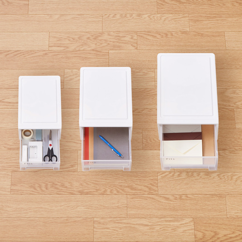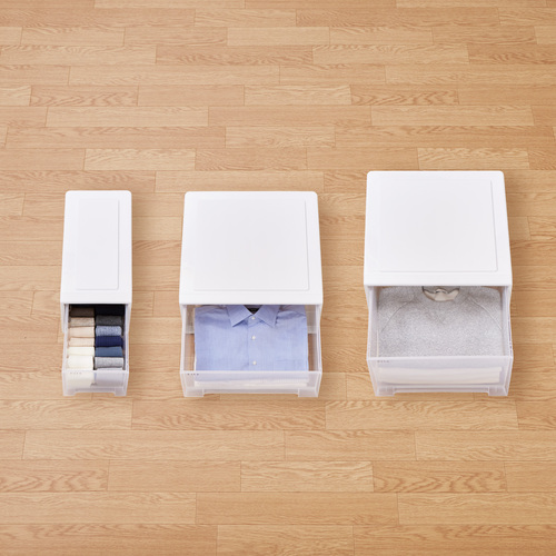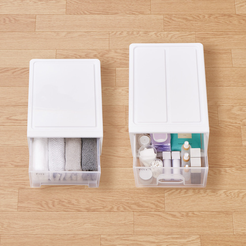 ●中身が一目瞭然な半透明の引出しです。