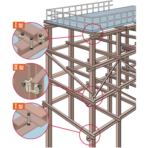 ●主に仮設構造物のボルトレス挟締に。
