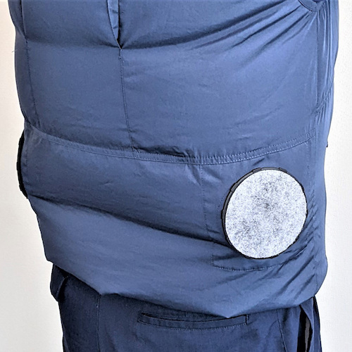 ●粉塵等の空調衣服内での循環低減、首元からの吹き出しを低減します。