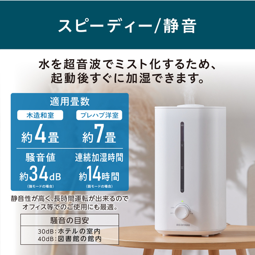 ●超音波式で安全性も高く、動作音も静かなので寝室にもおすすめです。