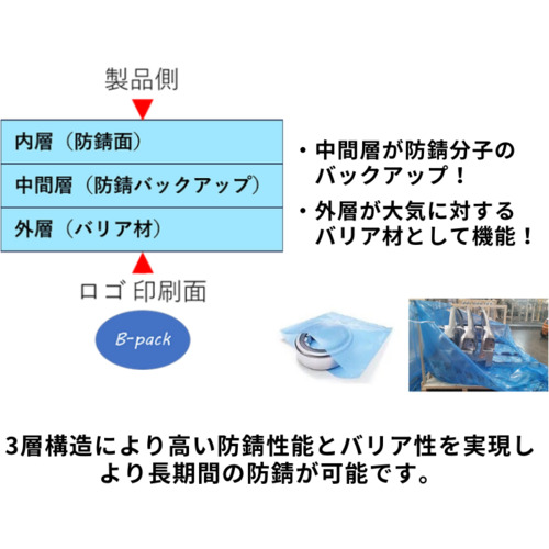 ●フィルム内側(ロゴ面でない側)から防錆成分が発散されるため、必ず内側に対象物を包んでください。