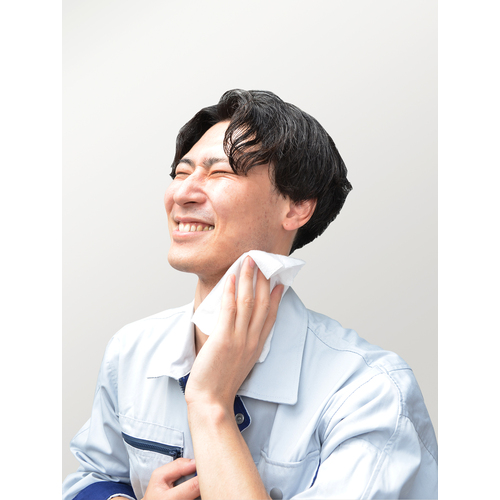 ●布タオルのような肌触りのひんやり不織布で、汗・べたつきをすっきり拭き取ります。