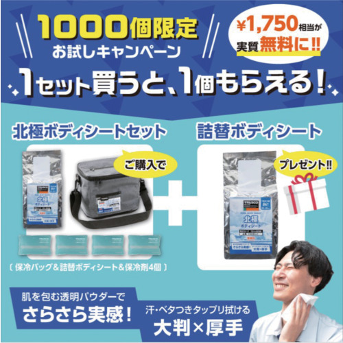 TRUSCO 【限定1000セット】クール汗拭きクロス ”北極ボディシート” 保冷剤付き 詰替1セット付き CSH84SET-P1