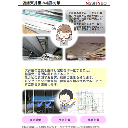 ●店舗や倉庫、工場、簡易冷蔵・冷凍倉庫、物流センターの結露対策・空調に。