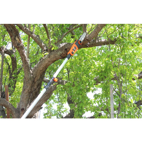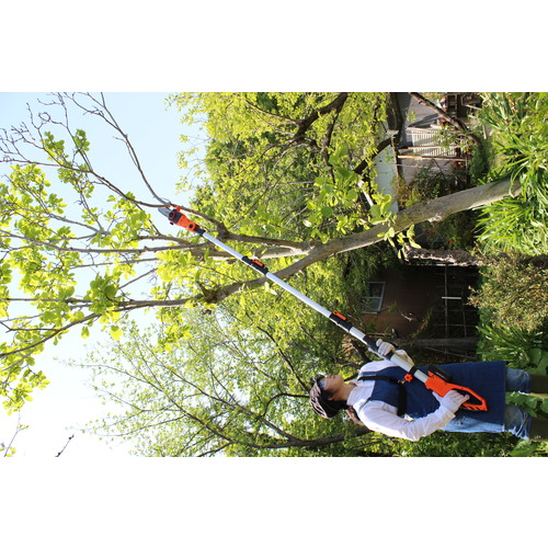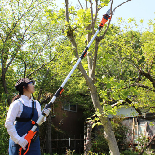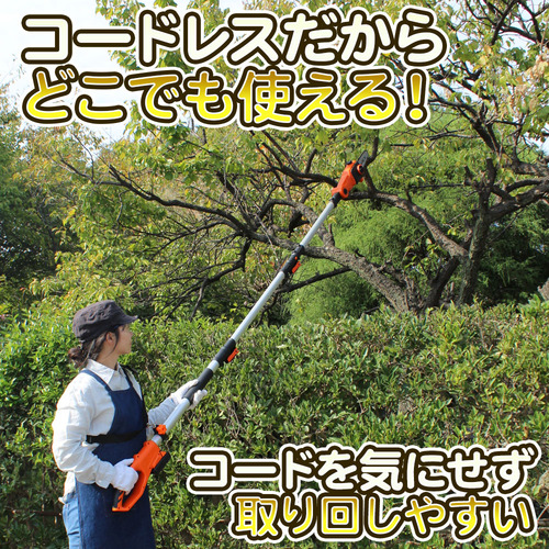 ●1回のフル充電で180本の枝が切れる高枝切り電動チェーンソーです。